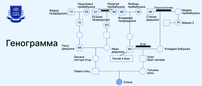 Глубина анализа. Идеально отразить минимум четыре поколения, что позволит увидеть повторяющиеся модели поведения и «белые пятна» в семейной истории.