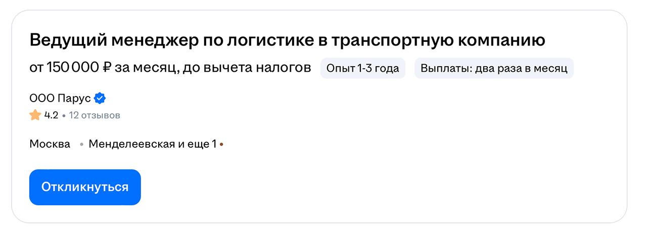 Посмотрим, сколько получают логисты, на примере реальных вакансий с hh.ru.