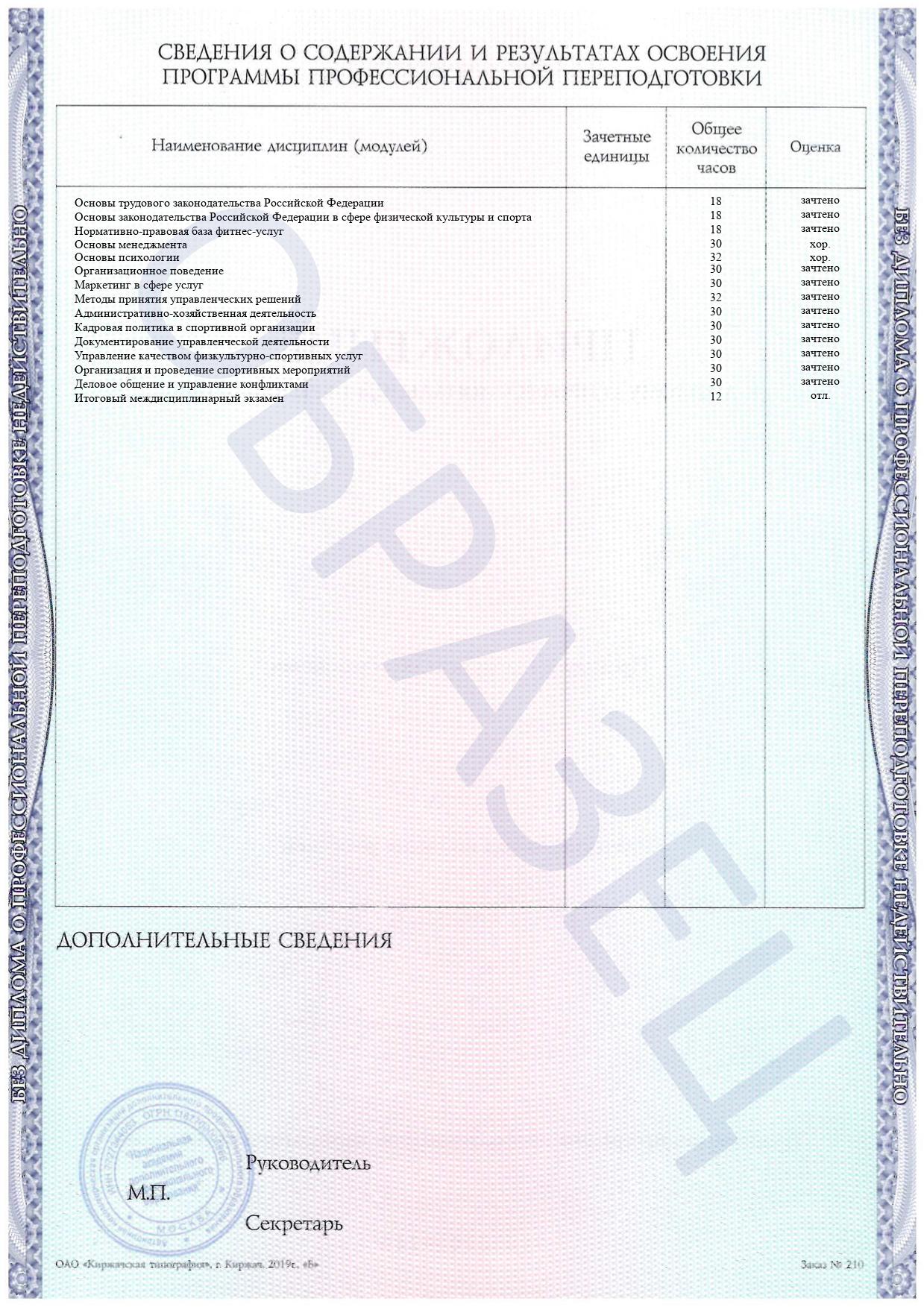 Раздел специальных дисциплин