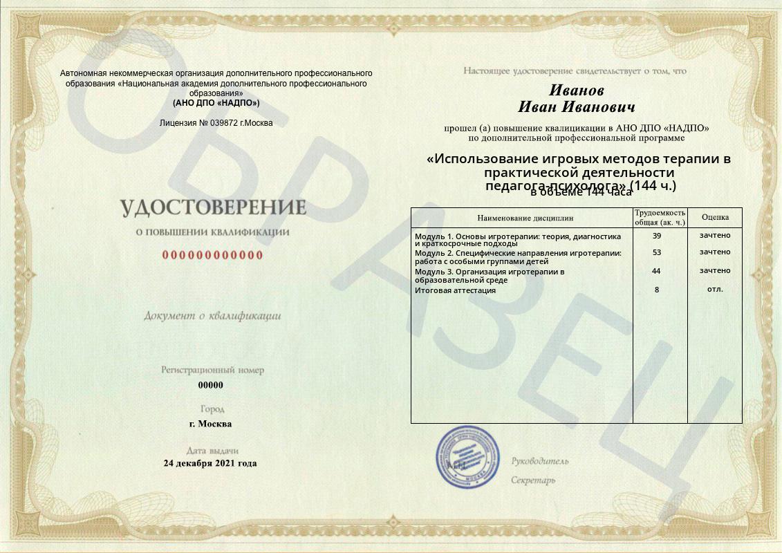 Тип документа: Удостоверение