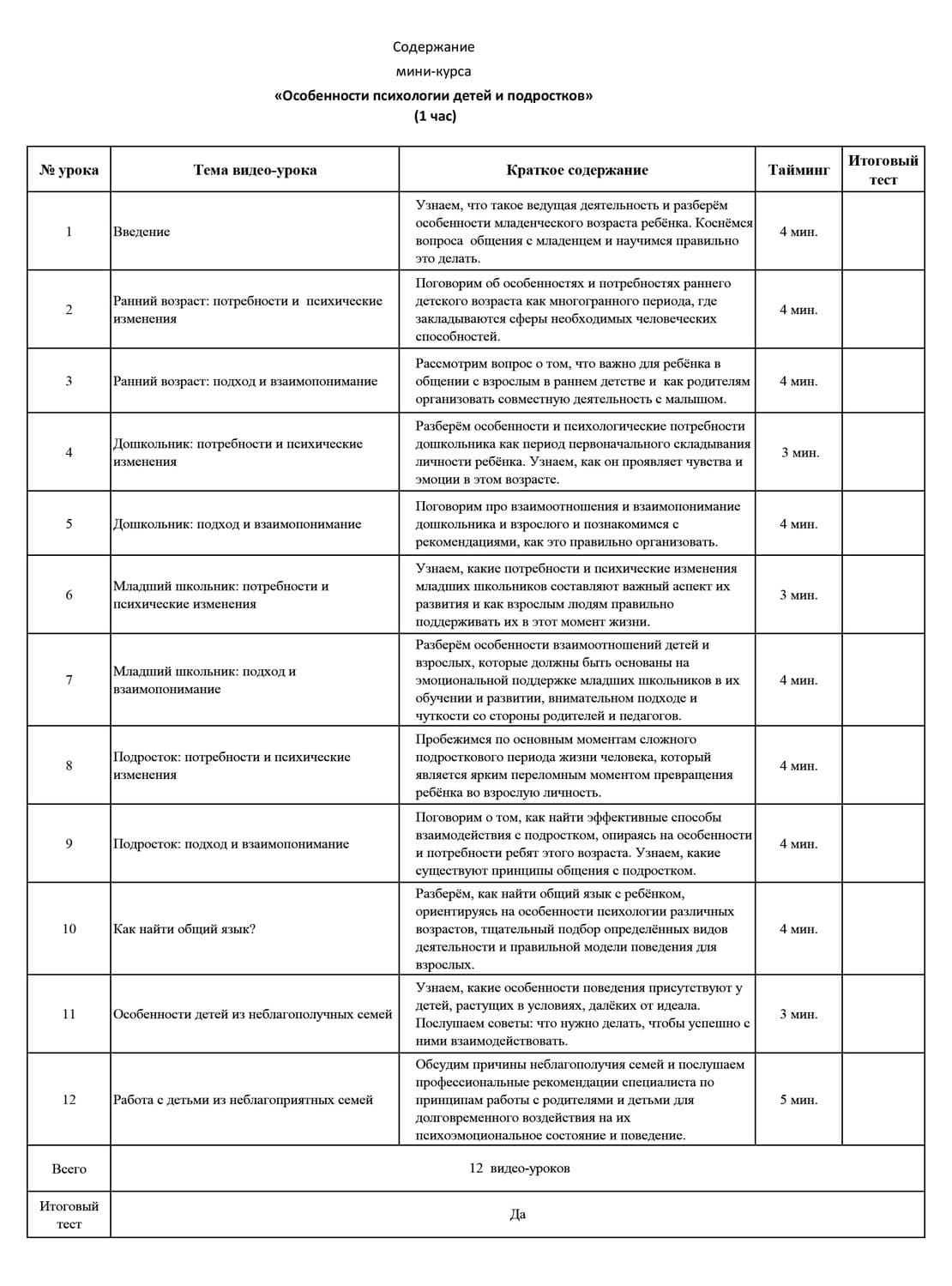 | № урока | Тема видео-урока | Краткое содержание | Тайминг | Итоговый тест | ||