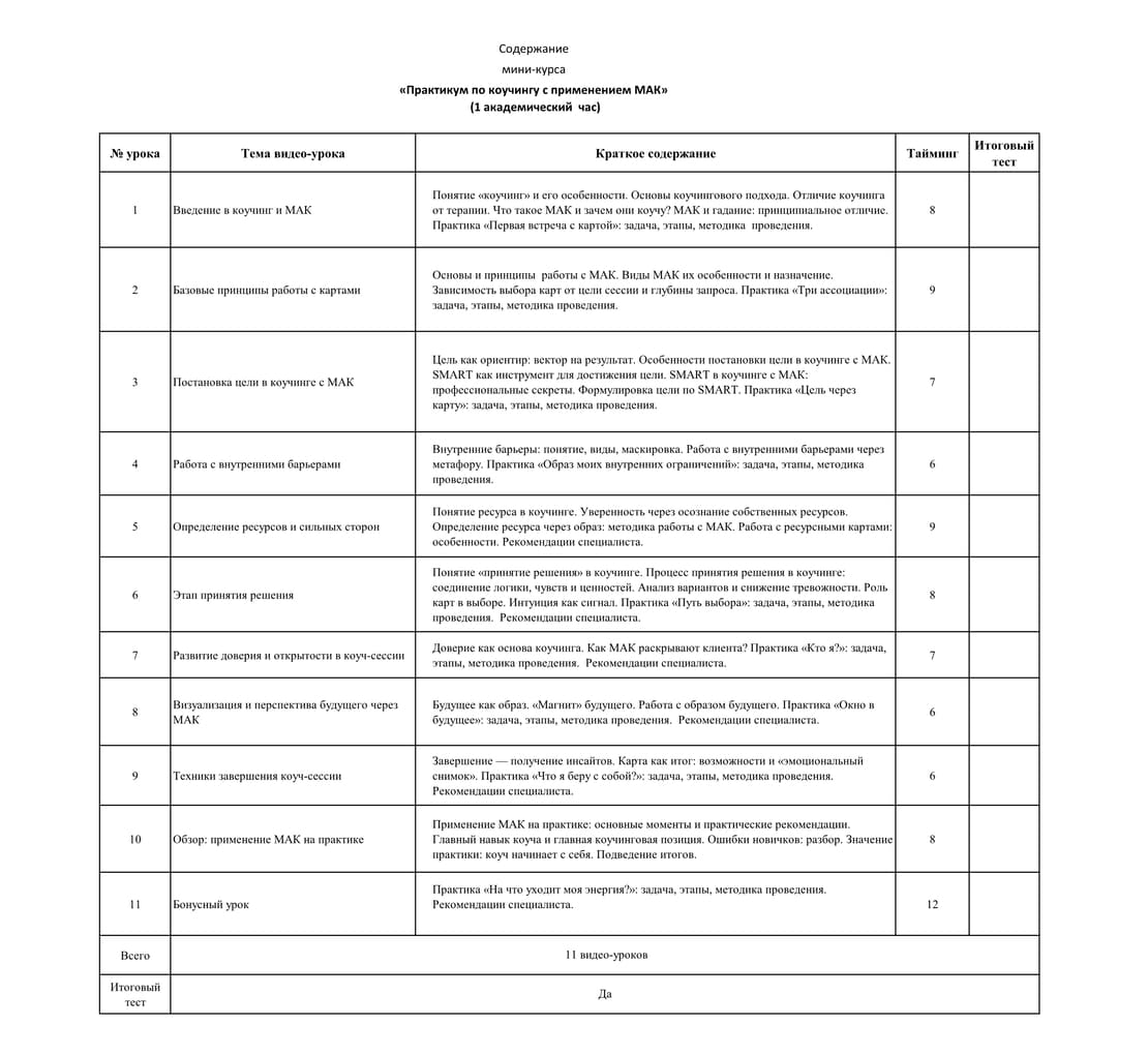 «Практикум по коучингу с применением МАК» — это уникальная возможность познакомиться с коучинговым подходом и освоить практики работы с метафорическими ассоциативными картами. Вы научитесь использовать их как мощный инструмент не только для раскрытия собственного потенциала, но и для помощи своим клиентам в постановке конкретных целей, преодолении внутренних барьеров и поиске себя.