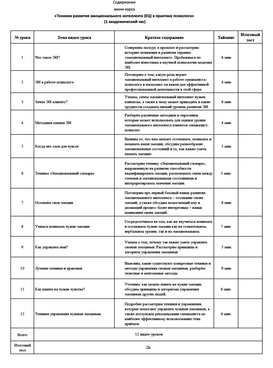 По окончанию курса у вас сформируется комплексное понимание концепции эмоционального интеллекта. Вы сможете оценивать ЭИ как у себя, так и у клиентов.