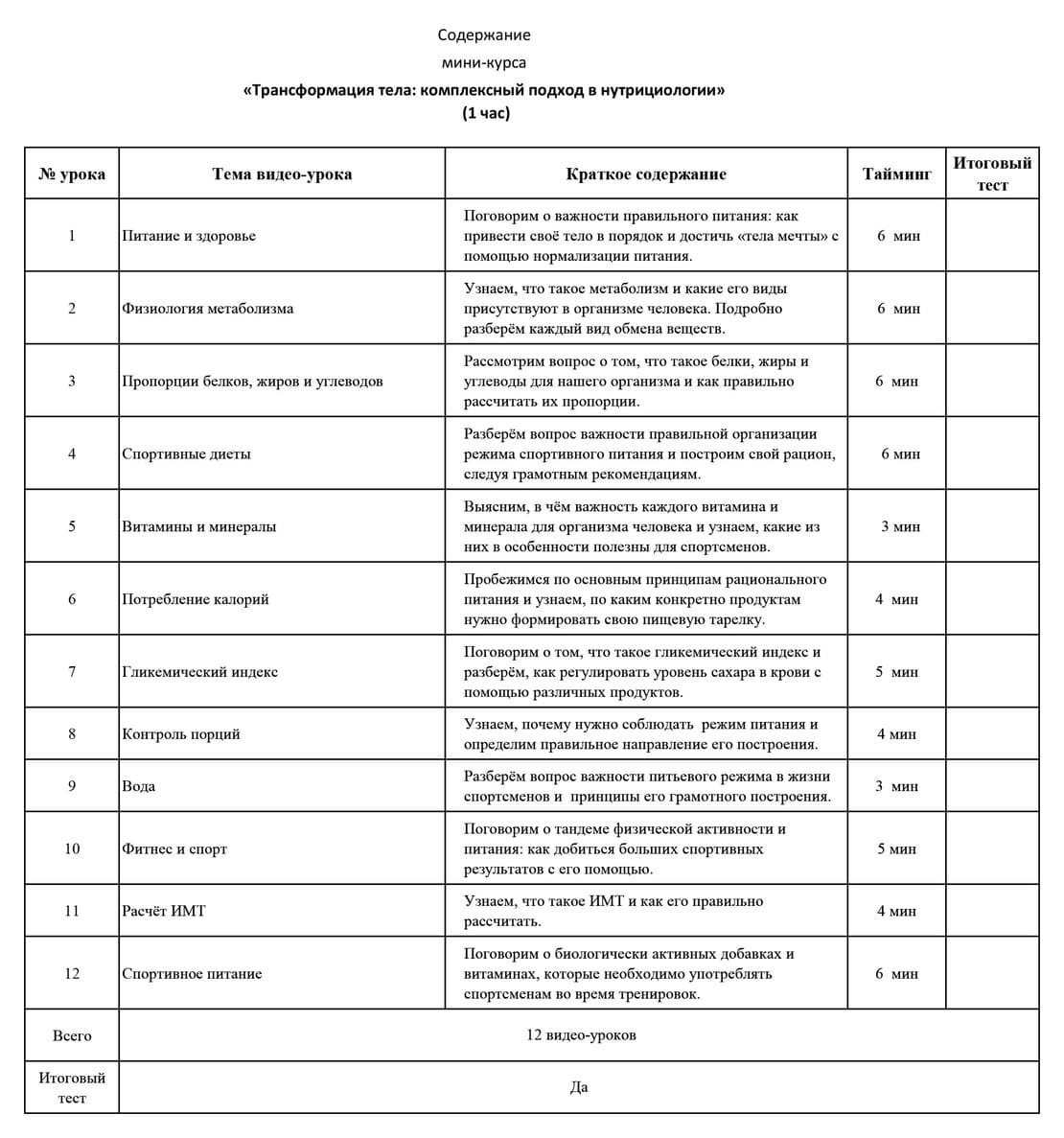 | № урока | Тема видео-урока | Краткое содержание | Тайминг | Итоговый тест | ||