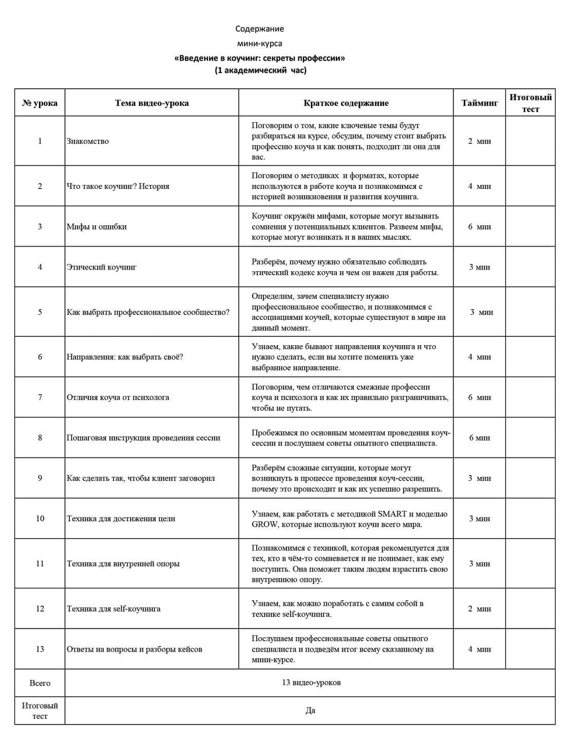 Курс включает в себя ключевые принципы и инструменты, этические нормы и профессиональные стандарты, действенные и результативные практики коучинга.
