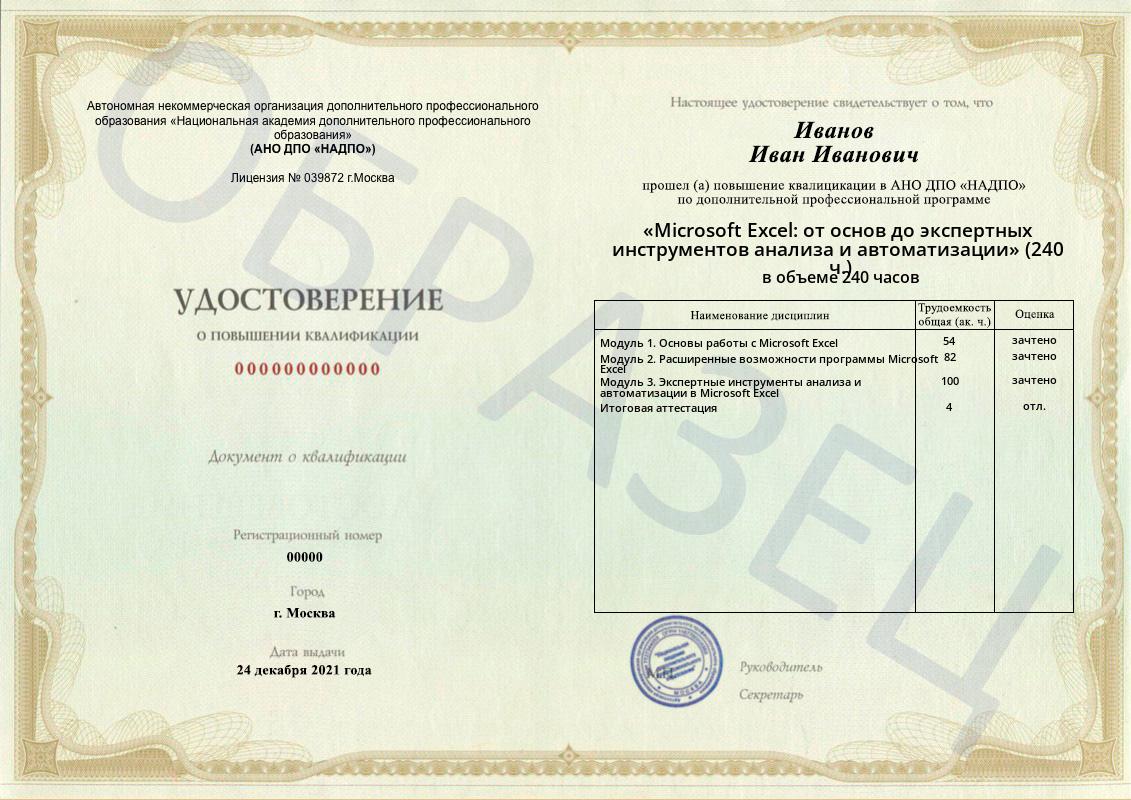 Тип документа: Удостоверение