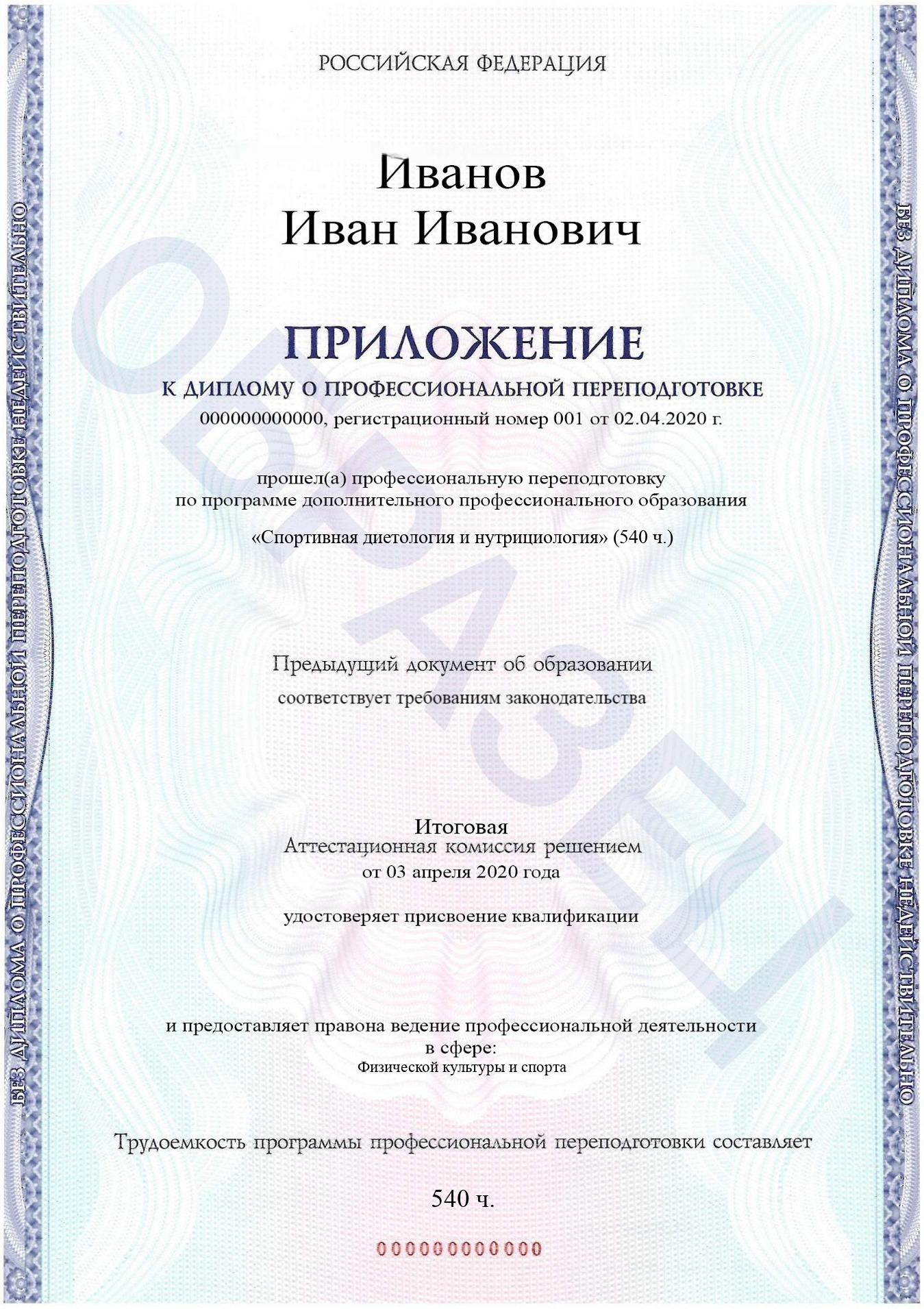 «Спортивная диетология и нутрициология»(540 часов)