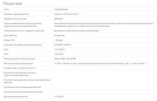 Шаг 2. Убедиться, что у учебного центра есть лицензия