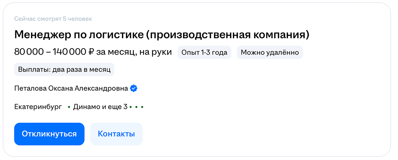 Пример вакансии и зарплаты логиста в Екатеринбурге