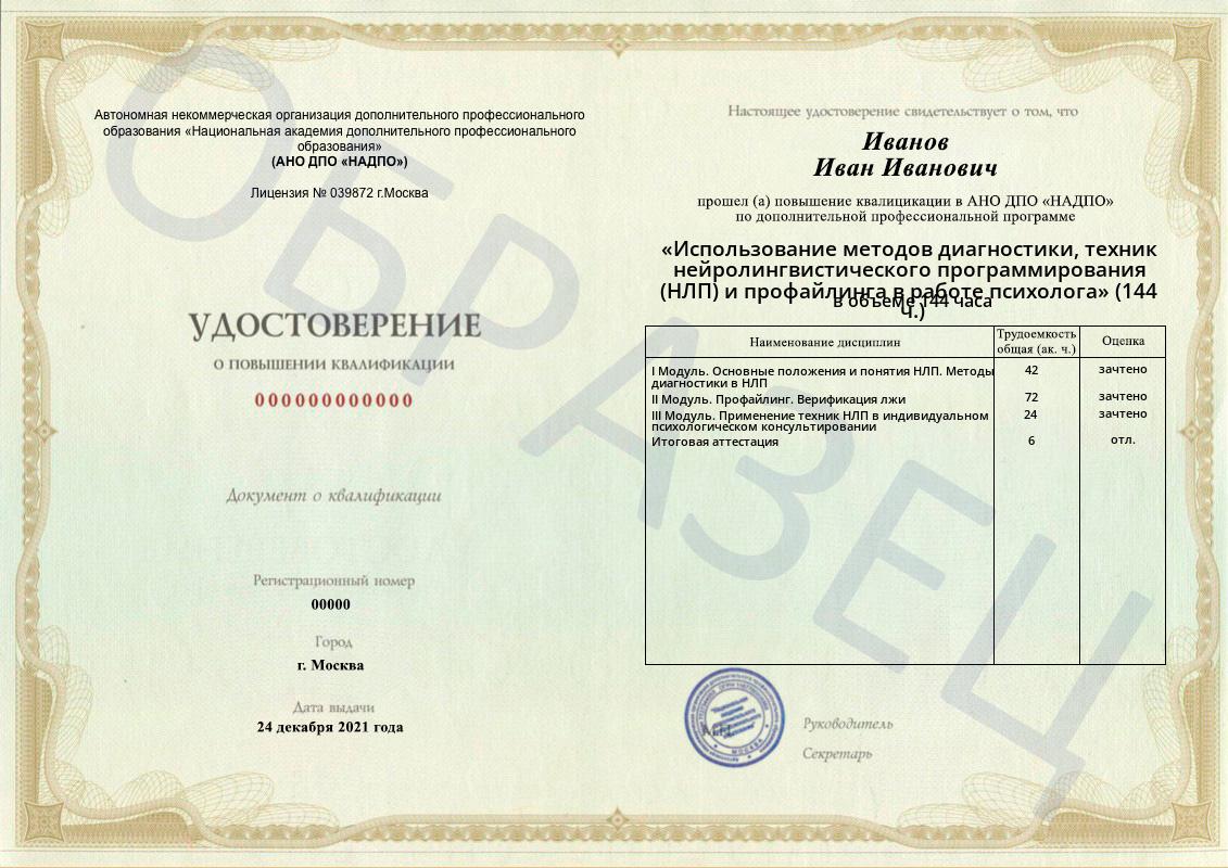Тип документа: Удостоверение