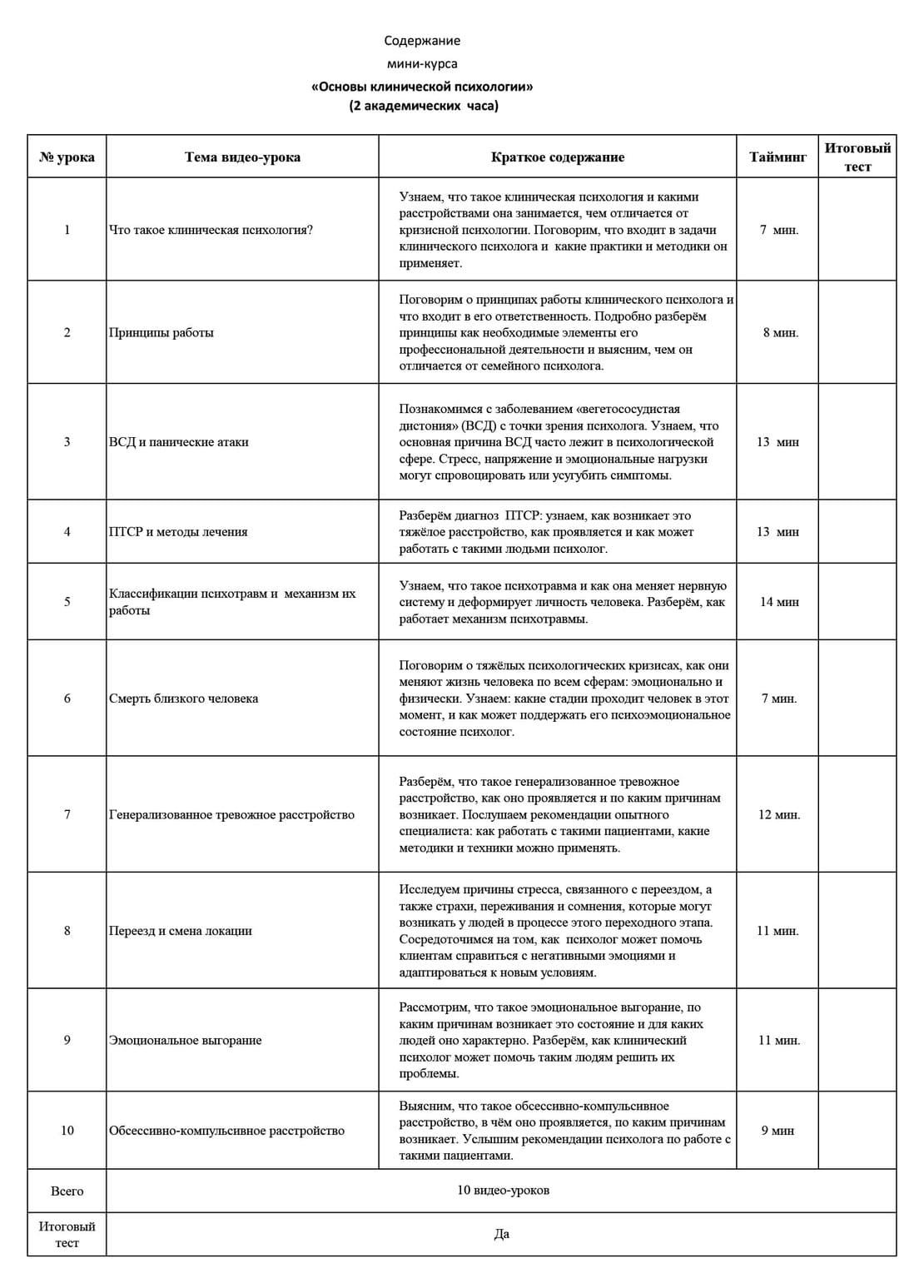 Программа данного курса содержит подробную актуальную познавательную информацию о различных психоэмоциональных расстройствах. Участники получат навыки для работы с практическими случаями, что позволит им лучше понять, как применять теоретические знания на практике и сделает обучение не только информативным, но и практически полезным.