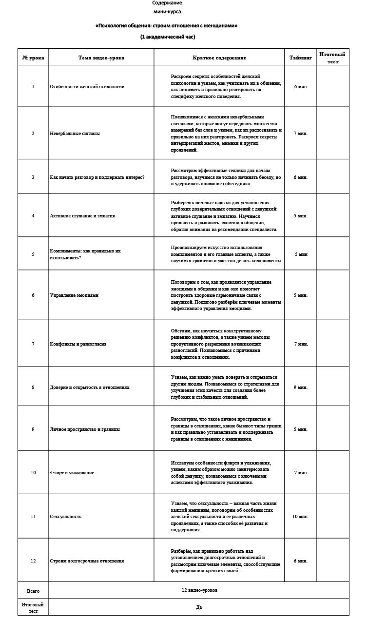 Этот курс предназначен для всех, кто стремится улучшить свои навыки общения и понимания в сфере знакомств. Он подойдёт не только мужчинам, желающим научиться подходить к женщинам и строить с ними отношения, но и женщинам, которые хотят лучше понять себя, свои желания и потребности.