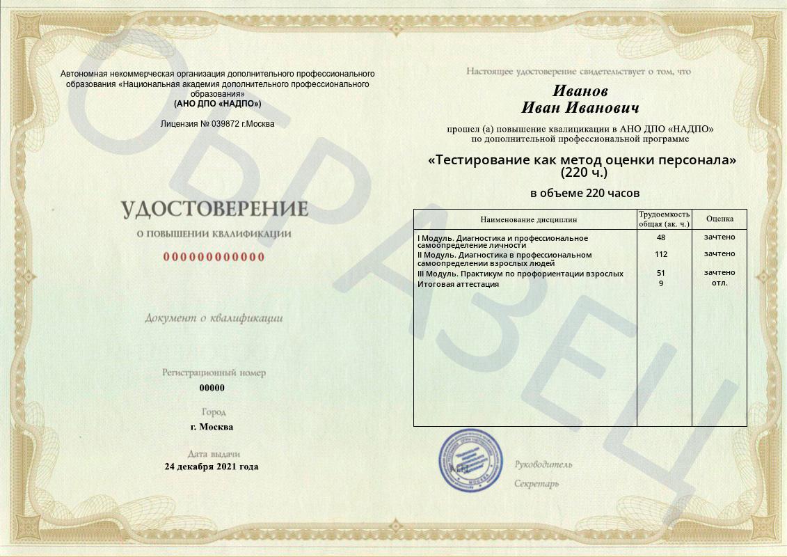 Тип документа: Удостоверение