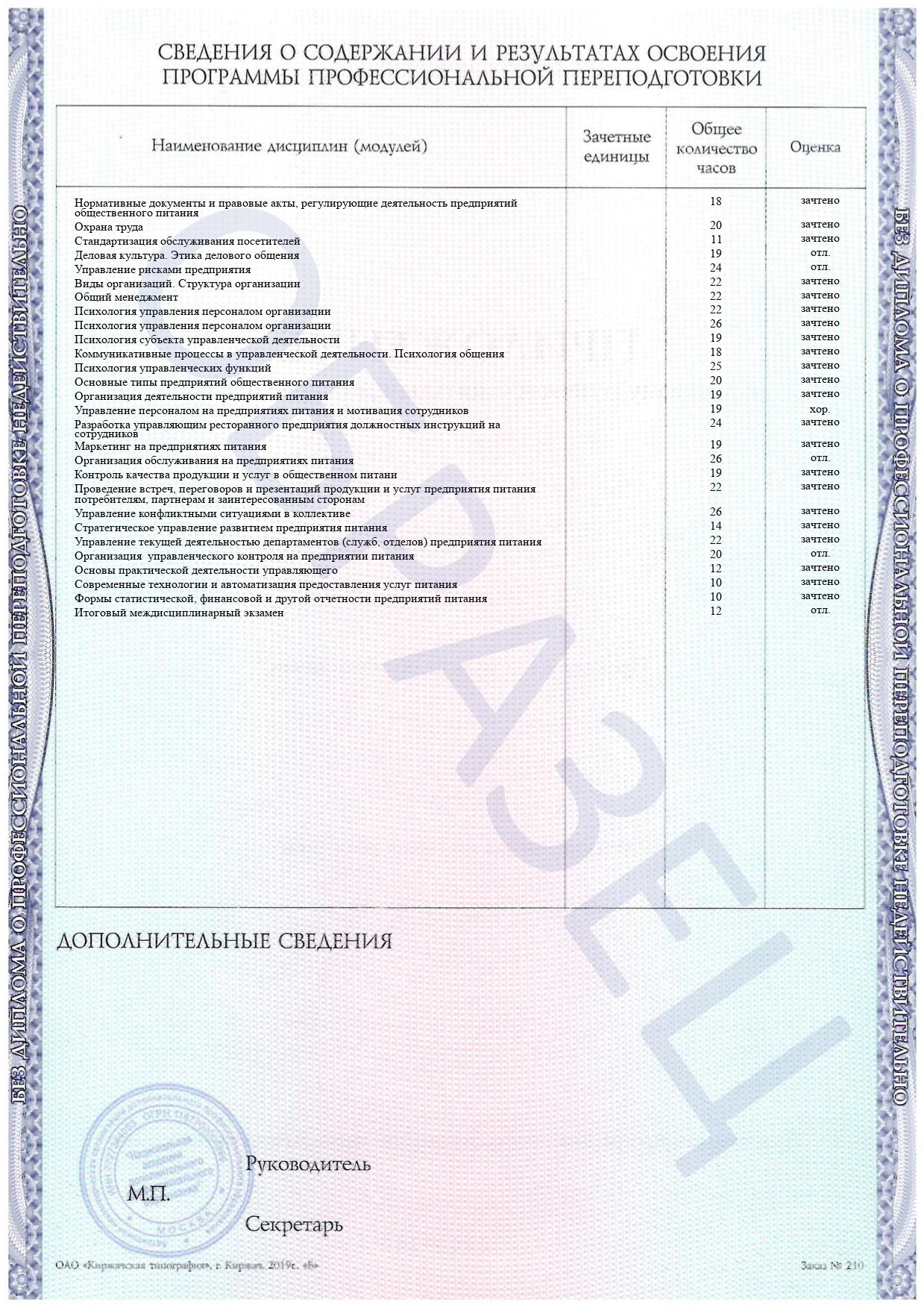 Квалификации: Руководитель предприятия питания