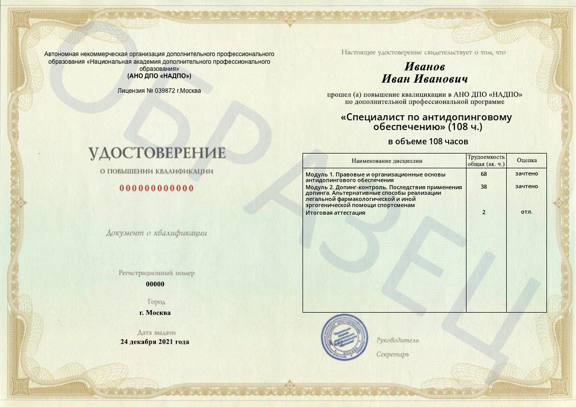 Тип документа: Удостоверение