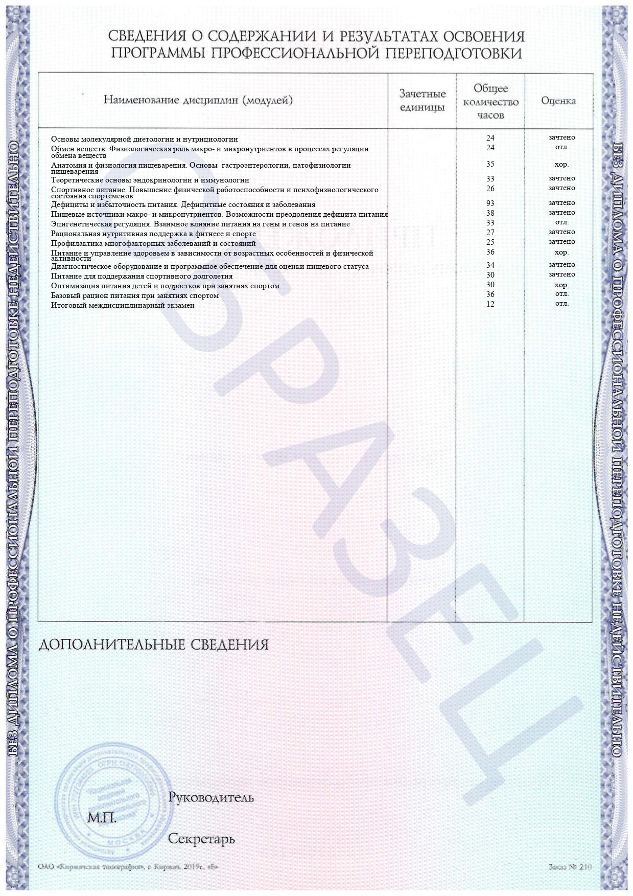 Хотелось бы поблагодарить создателей этого интереснейшего курса по спортивной диетологии и нутрициологии. Материал настолько познавательный и актуальный в наше время, что учеба дается очень легко и совсем не хочется прерываться на другие дела. Хочется продолжать изучение и не останавливаться. Огромное спасибо за возможность больше узнать о себе и своем организме.
